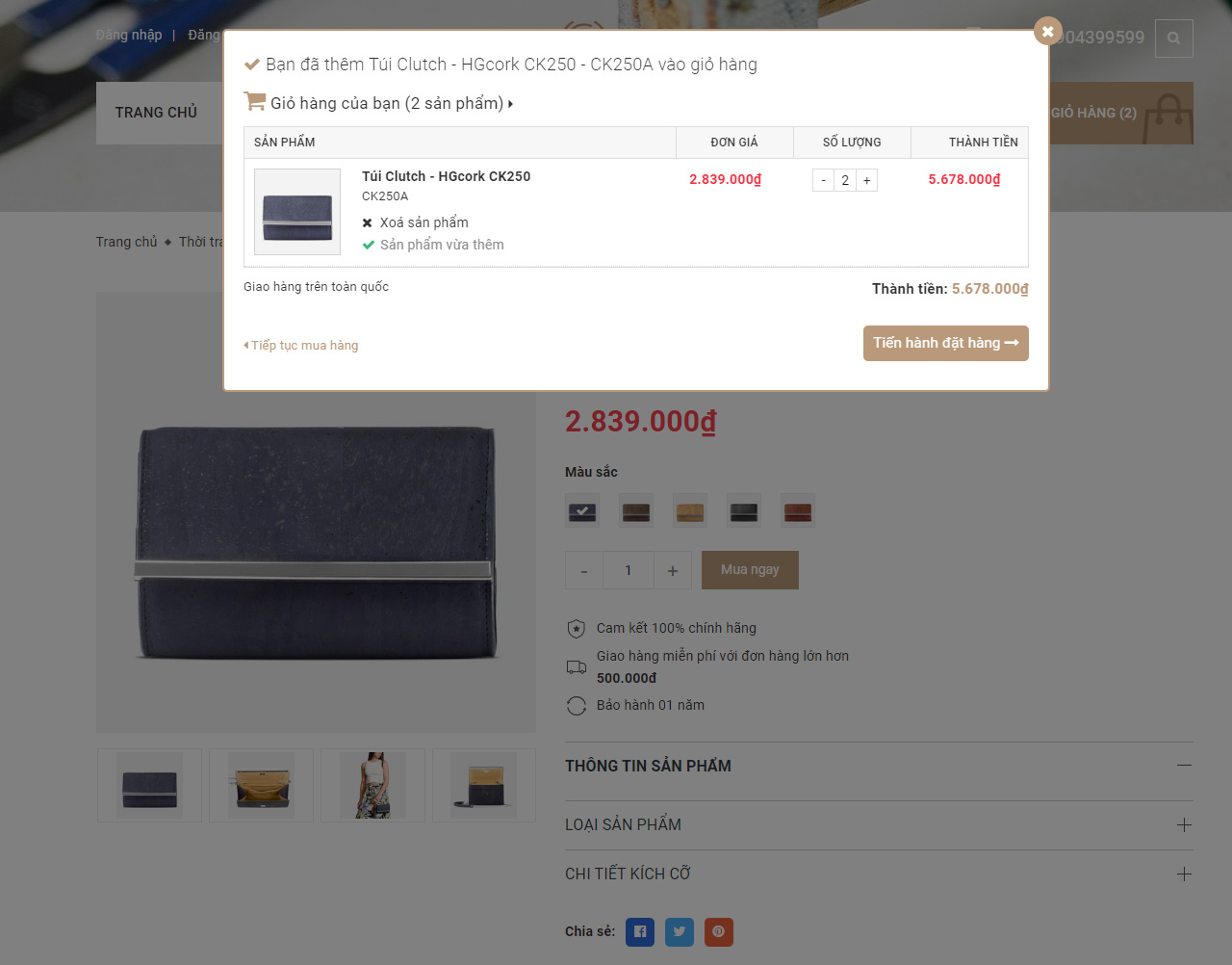 - Lựa chọn Màu sắc, Số lượng sản phẩm mong muốn