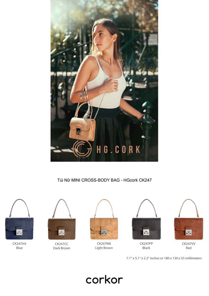 Túi đeo chéo Mini Bag HGcork Ck247 là một chiếc túi/ví tuyệt đẹp với nội thất rộng rãi và dây đeo kim loại tông màu bạc sáng sang trọng, cho cảm giác quyến rũ hiện đại.