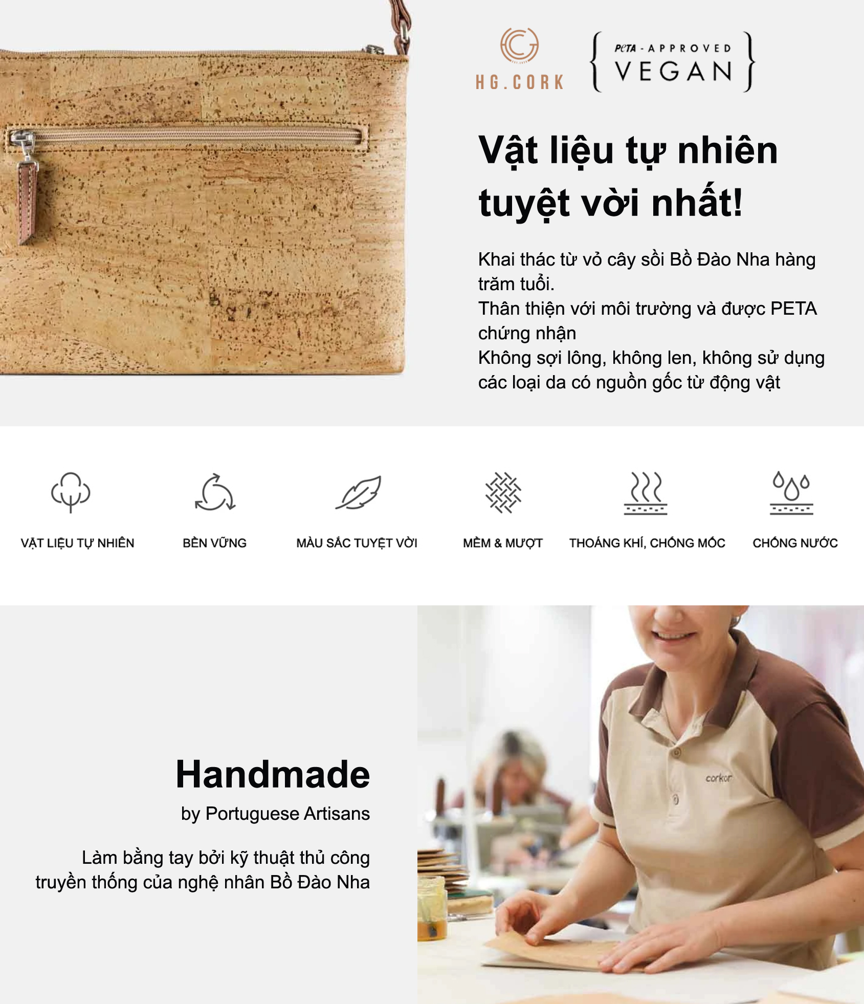 6. Các sản phẩm từ cork được chứng nhận thuần chay Vegan bởi PETA