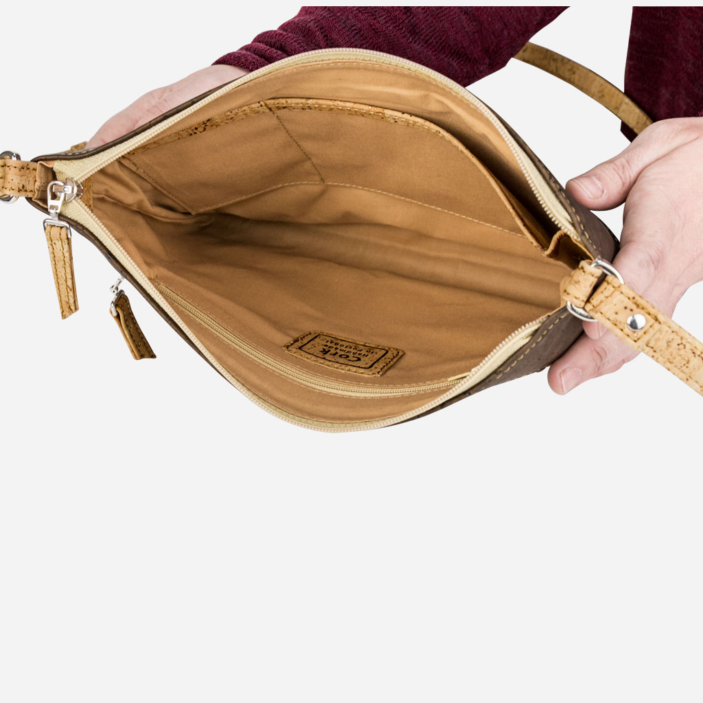 Crafted from genuine cork, the Crossbody Purse is a sharp everyday choice. A pair of asymmetrical zip pockets lend a bit of edge to this clean-lined vegan crossbody bag, while its interior slip pockets are perfect for organizing your essentials.