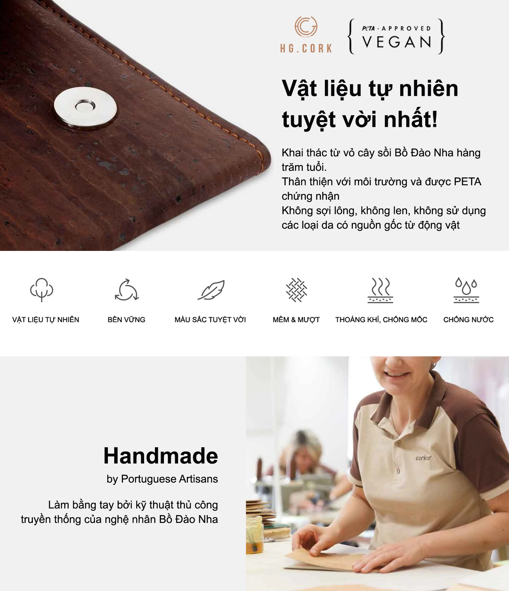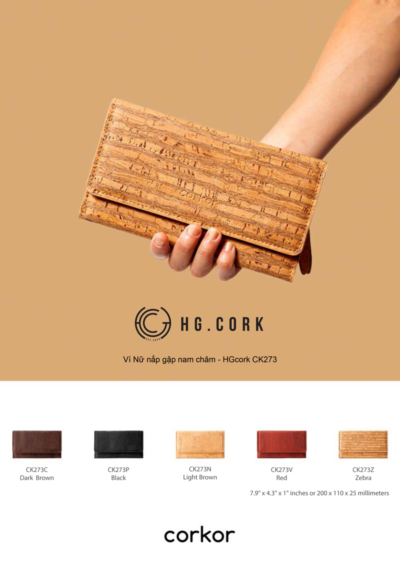 Ví da cork vỏ sồi Bồ Đào Nha 43 năm tuổi HGcork CK273 làm một chiếc ví có thiết kế đẹp mắt, mỏng nhẹ tinh tế.
